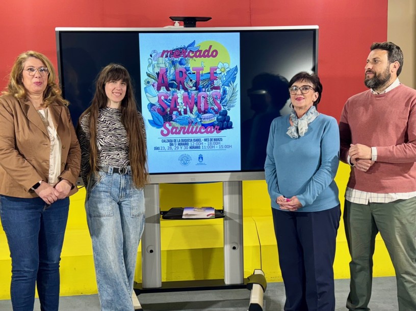 La Delegación Municipal de Comercio, que dirige la concejala Elena Ramírez, ha presentado una nueva edición del Mercado de Artesanos de Sanlúcar, que se celebrará los días 9, 23, 28, 29 y 30 de este mes de marzo en el Paseo de La Calzada de la Duquesa Isabel. En la presentación también han estado presente la presidenta de la Asociación de Artesanos de Sanlúcar, María Romero, así como la vicepresidenta y el tesorero de la citada entidad, María Eugenia Rodríguez y Manuel Álvarez respectivamente.