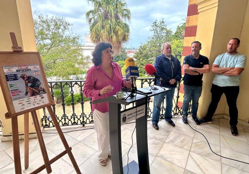 La alcaldesa, Carmen Álvarez, ha presentado hoy el cartel anunciador junto al presidente de la Federación Andaluza de Motociclismo, Juan Álvarez; el delegado de la RFME, Jonathan Villa; y el secretario del Moto Club Sanluqueño, Iván Rodríguez.