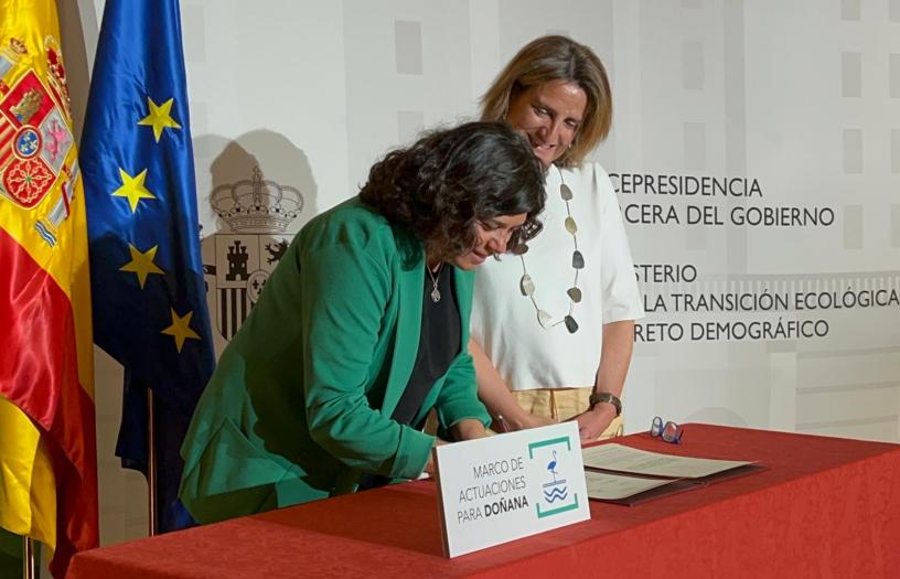 La portavoz municipal y coordinadora local de IU Sanlúcar rubricó en su calidad de alcaldesa el documento junto a la ministra para la Transición Ecológica, Teresa Ribera