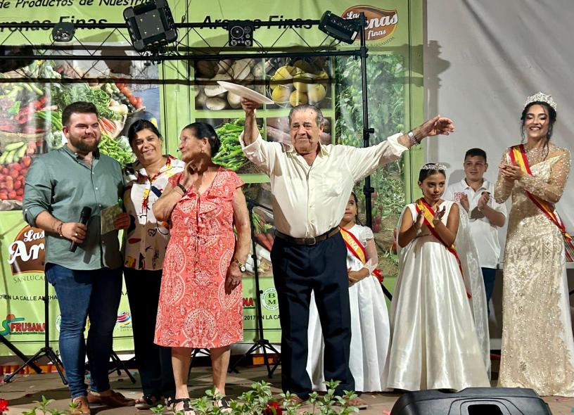 Acompañada por la delegada municipal de Participación Ciudadana, Carmen Pozo, la alcaldesa recogió agradecida la distinción que la organización concedió al Ayuntamiento por hacer posible, con su apoyo, la celebración de este evento tradicional y solidario que cada año, desde hace ya más de 40, contribuye a promocionar los productos hortofrutícolas amparados por la marca de calidad Arenas Finas.
