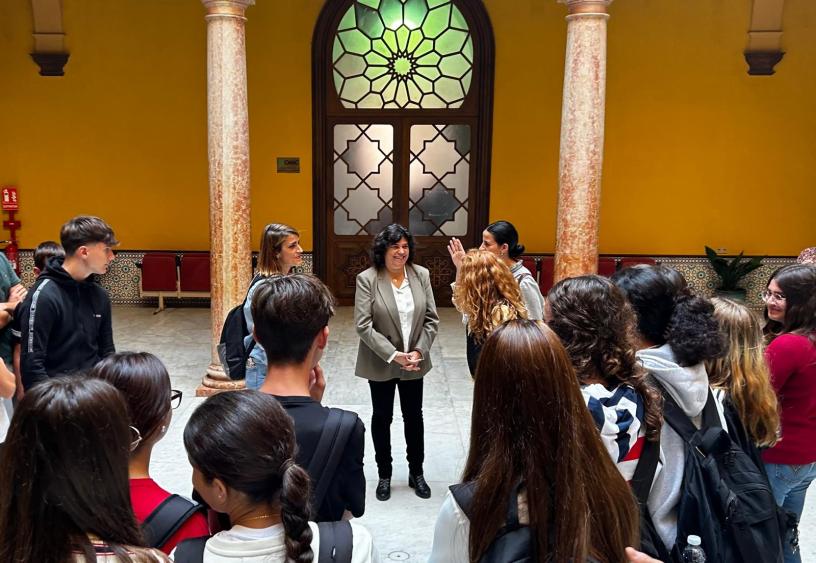 La alcaldesa se ha dirigido a las profesoras y al alumnado visitante manifestando que “el Ayuntamiento es vuestra casa” y destacando que todas las delegaciones municipales, como las de Educación, Cultura y Turismo, están a su entera disposición para la ejecución de este proyecto sin precedentes en el instituto.